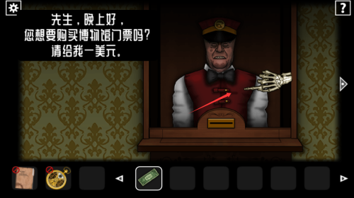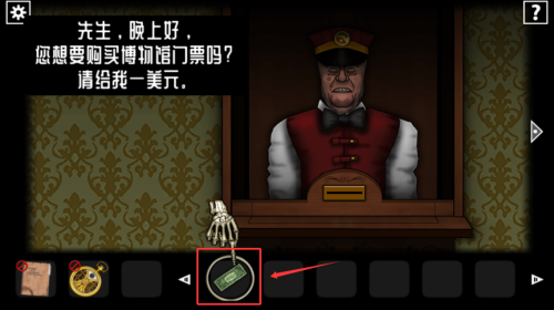 2、將紅框內(nèi)一美元紙幣,拖給售票員購(gòu)買博物館門票。